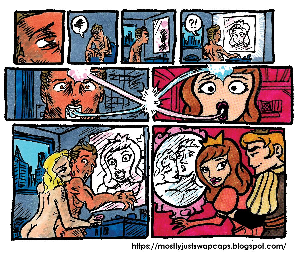 When writing the last Body Switchers Club caption, I realized I had too many members! Thus, I'm going to do the comic book thing, and divide them in to the West and East Coast clubs, and then put them at odds with each other! Hopefully I've written this story well enough that you don't need to pay super close attention to names BUT if you want the club line ups...